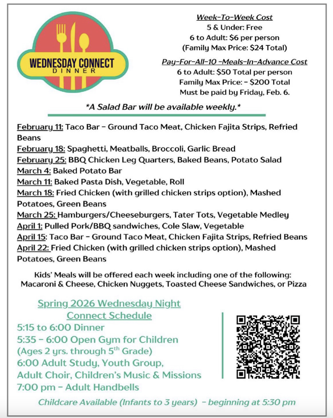 Wednesday Night Connect (WNC) is an opportunity for our community of faith to gather mid-week to break bread and spend time together in a casual setting. We’re so excited to kick off our Spring 2026 Wednesday Night Connect (WNC) and invite you to make this midweek connection with our community of faith a part of your routine.